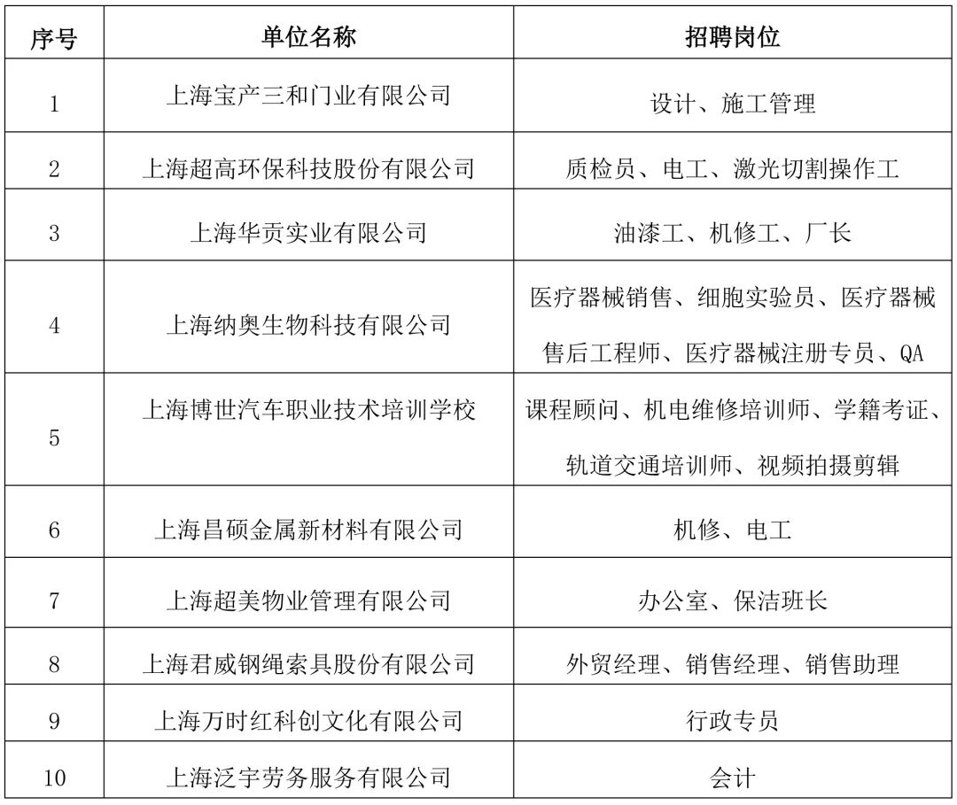 宝山招聘概览